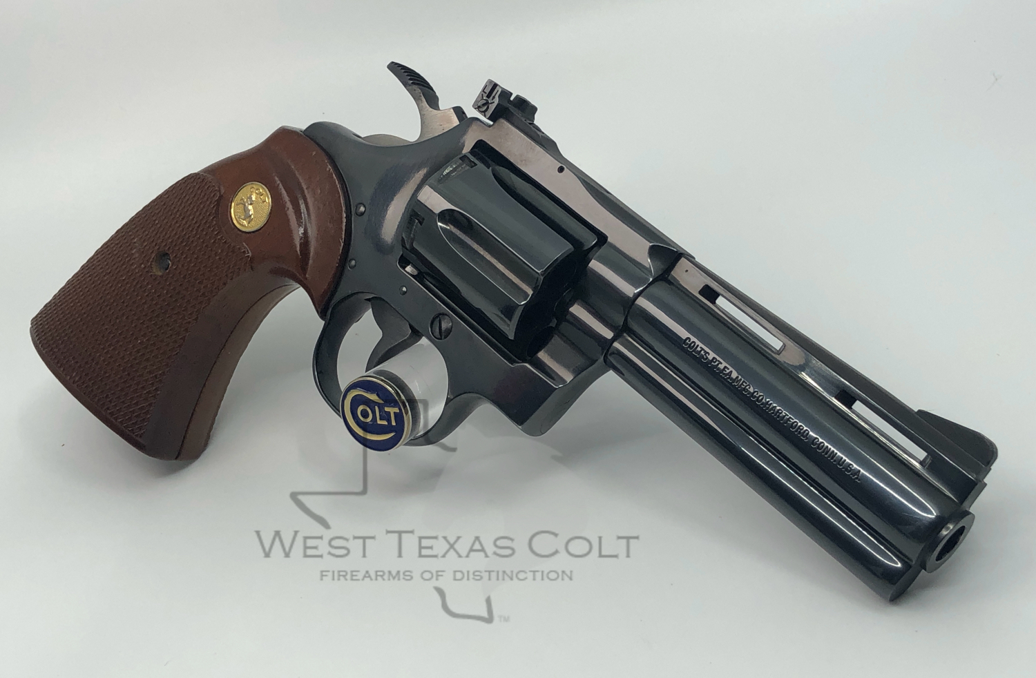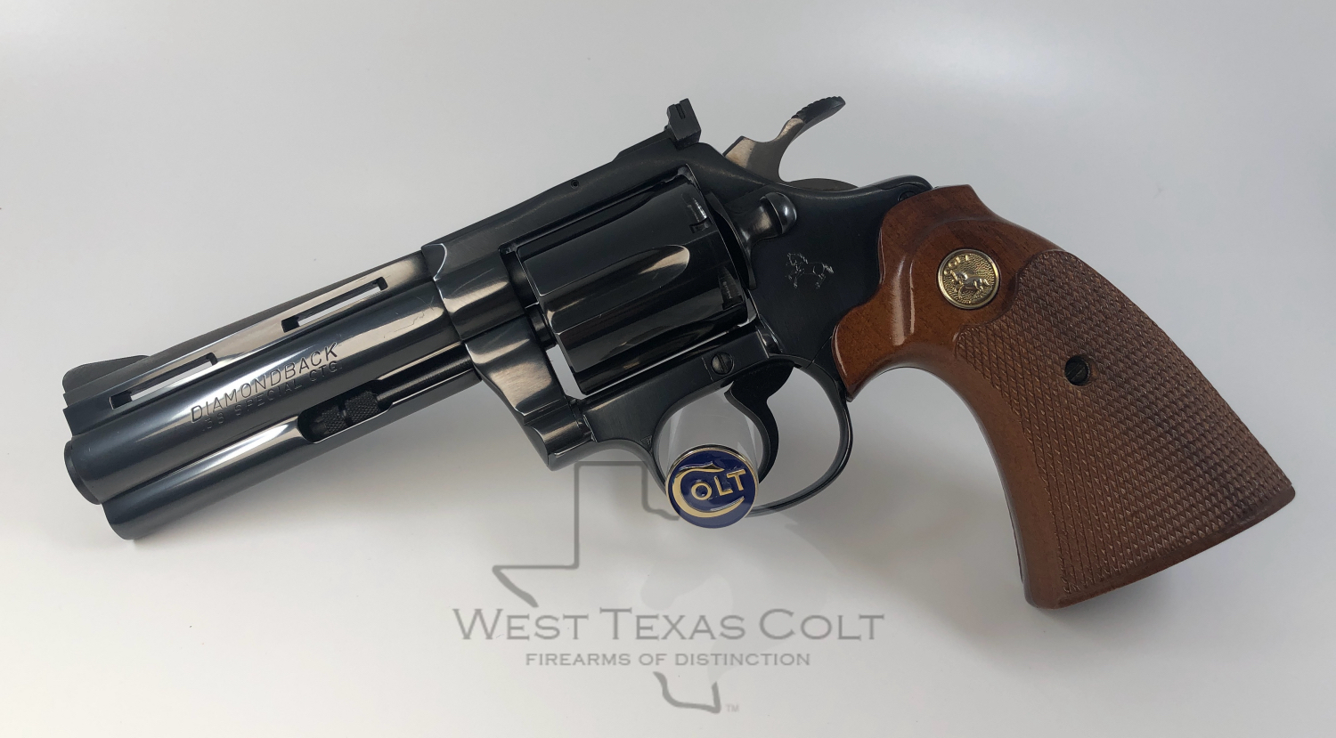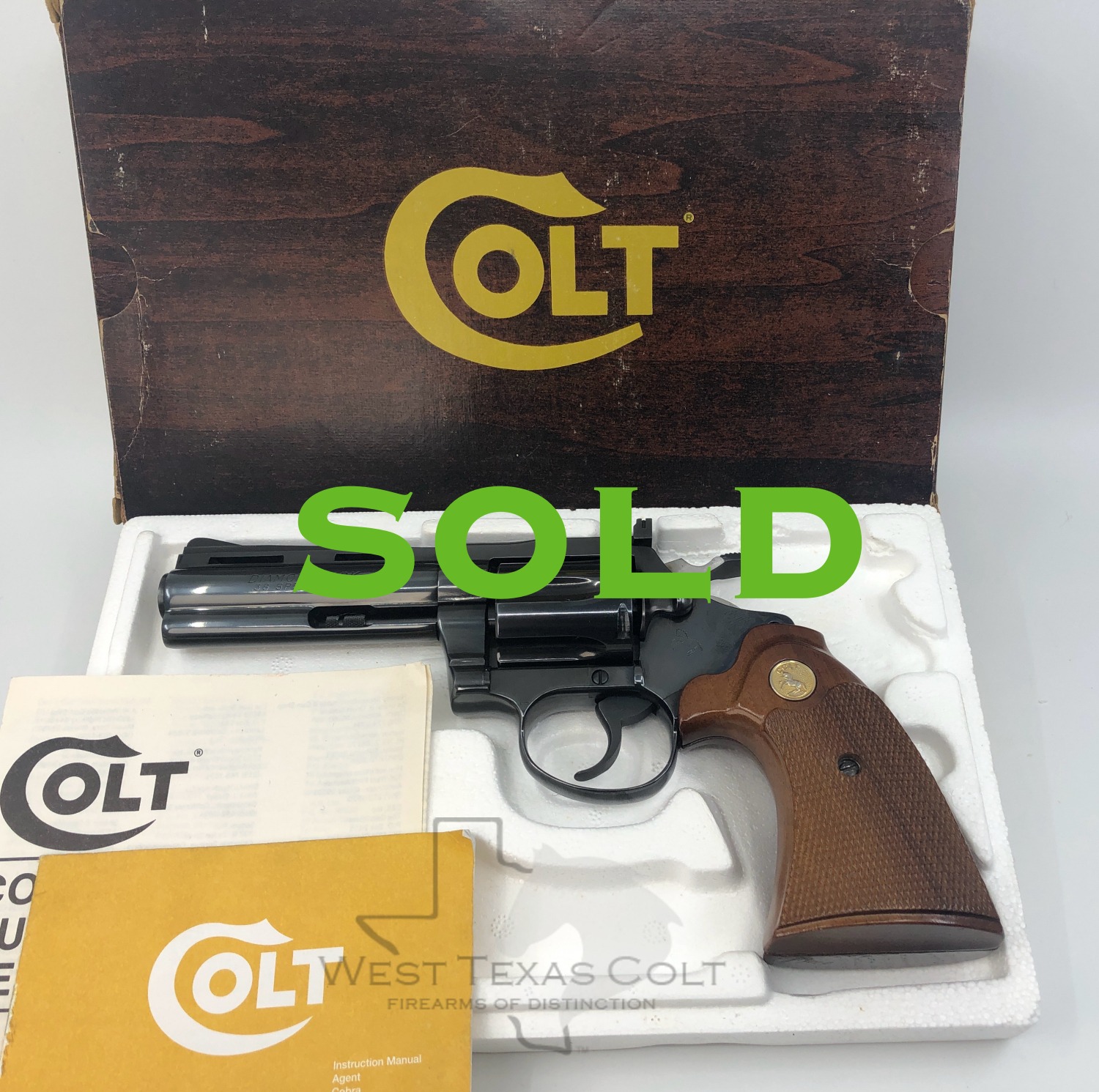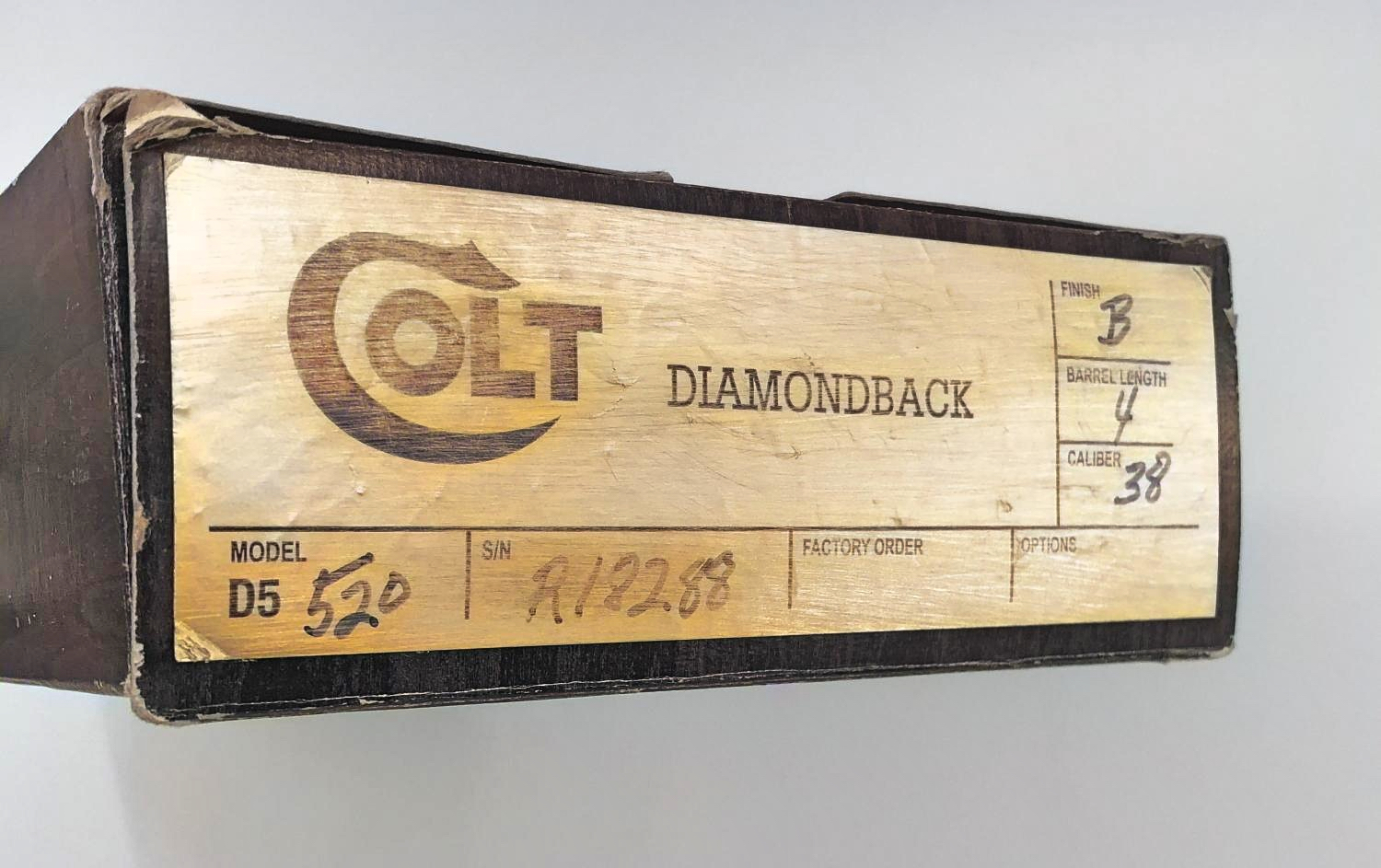 1978 COLT DIAMONDBACK 6-shot, .38 Special revolver with a 4″ barrel and a gorgeous original blued finish. In 1966 Colt introduced another member of its famous series of “Snake Guns”, the Colt Diamondback. The Diamondback was intended to be a premium quality adjustable sighted revolver that would resemble the popular Python. The new Diamondback had a wide, long, grooved Target hammer, Target type walnut grips, Colt “Accro” adjustable sights, and a barrel that looked like a Python barrel- and was in fact built on Python machinery. In the last decade, Diamondbacks have become highly sought after and Collectors are hard pressed to find them today in high condition. Mint condition Diamondbacks that are complete in their original boxes have just about evaporated from the marketplace in recent years. This particular gun is in spectacular condition and shows no evidence of firing or use. It comes to us from a longtime customer and collector and looks just as it did when it left the factory 47 years ago. The original factory walnut target grips are pristine, and have sharp checkering throughout. The finish on this weapon is practically flawless, and has obviously been well cared for. If your collection is missing the elusive Diamondback- here is a perfect example of one of the most popular and collectable “Snake guns” ever produced. Please see photos for item condition and details and do not hesitate to contact us directly with any questions at [email protected]